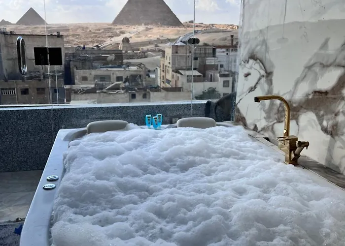 Located within 400 metres of Solar Barque Pits, this hotel is in proximity to the Great Sphinx of Giza. Sphinx Temple lies a 7-minute walk away. 1.2 km from the Khufu Ship is a perk for guests staying at the 3-star hotel. There is Giza to Cairo bus stop within reach of the Middle East Pyramids Veiw & Spa.